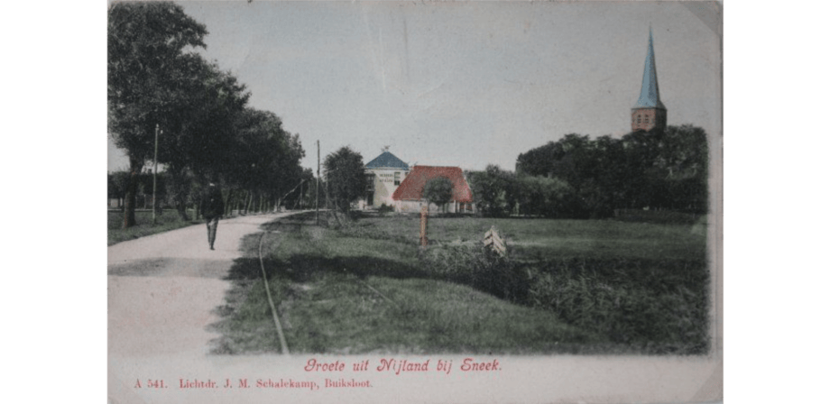 De afgelopen twee eeuwen is in en rond Nijland het een en ander veranderd. Halverwege 19e eeuw werden de modderige landwegen geleidelijk vervangen door grintdijken. Belangrijk in dit verband was de aanleg van de Rijksweg tussen Sneek en Bolsward rond 1844. Dit was een zogeheten macadamweg, vernoemd naar de Schotse ingenieur John McAdam die dit wegtype uitvond. Macadamwegen vormden in het Friese buitengebied vroege varianten van (deels) verharde wegen. Ter hoogte van Nijland volgde deze weg ongeveer het tracé van de oude landweg. In 1882 kwam langs de weg een tramlijn te liggen. Kaartjes moesten aanvankelijk bij de herberg worden gekocht.